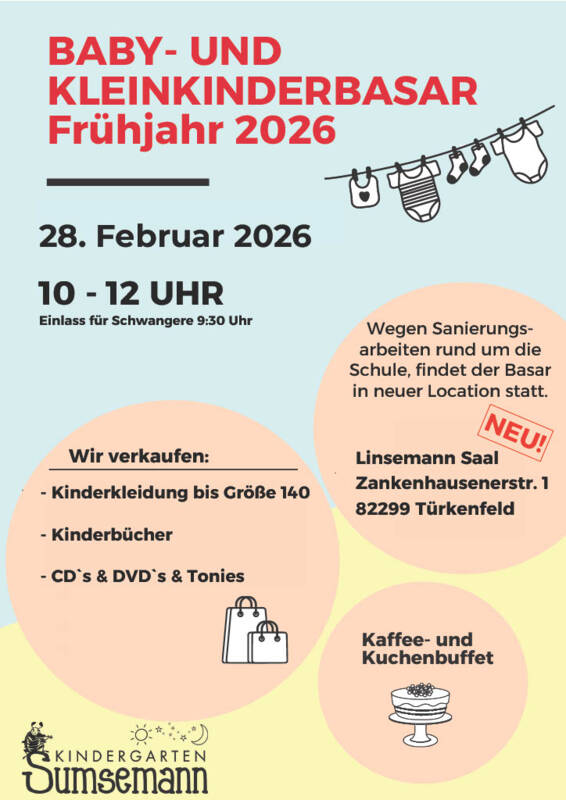 Am 28.02.2026 findet der jährliche Baby- und Kinderflohmarkt statt. Die Helferlisten für den Auf- und Abbau sowie für die Kuchenspenden werden wir demnächst in der Krippe und den Kindergärten aushängen.