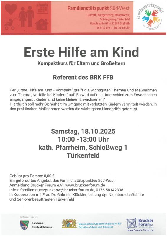 Bei Fragen wenden Sie sich bitte direkt an den Familienstützpunkt Süd-West: 0176 58142308, familienstuetzpunkt-sw@brucker-forum.de