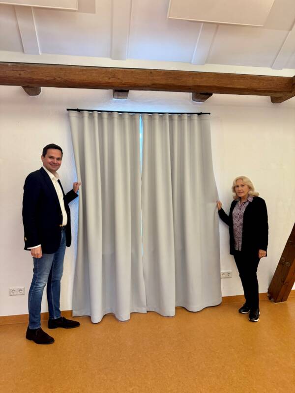 Ein lang gehegter Wunsch ist in Erfüllung gegangen: Der Linsenmann-Saal im Herzen der Gemeinde Türkenfeld wurde mit professionellen Verdunkelungsvorhängen ausgestattet. Gerade bei Vorträgen oder Filmvorführungen wie dem beliebten Format „Kino & Vino“ war eine zuverlässige Verdunkelung des Raumes bislang nur improvisiert möglich.