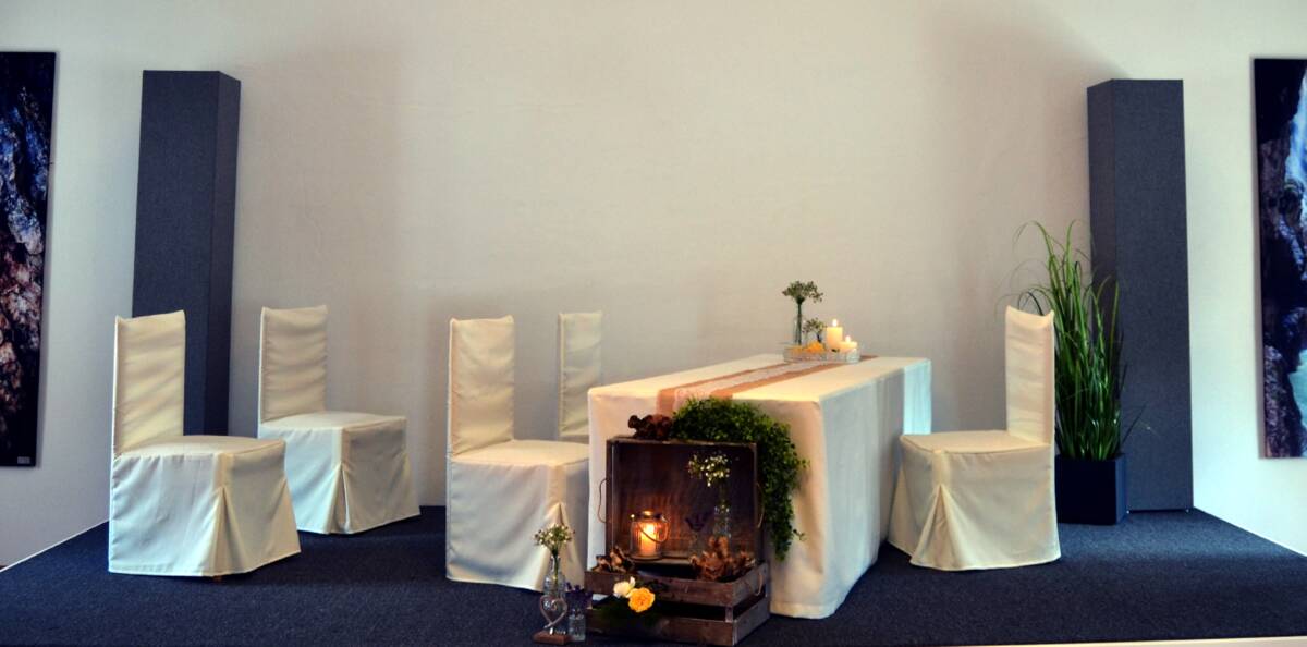 Wenn Sie nach dem Ja-Wort mit Ihren Gästen anstoßen wollen, können wir Ihnen bis zu 3 Stehtische und Sektgläser zur Verfügung stellen. Den Sekt bringen Sie bitte selbst mit. Sie können den Sekt einige Tage vor der Trauung vorbeibringen, er wird dann von uns kühl gestellt. Für den Sektempfang fällt je nach Gästezahl eine Reinigungspauschale an.